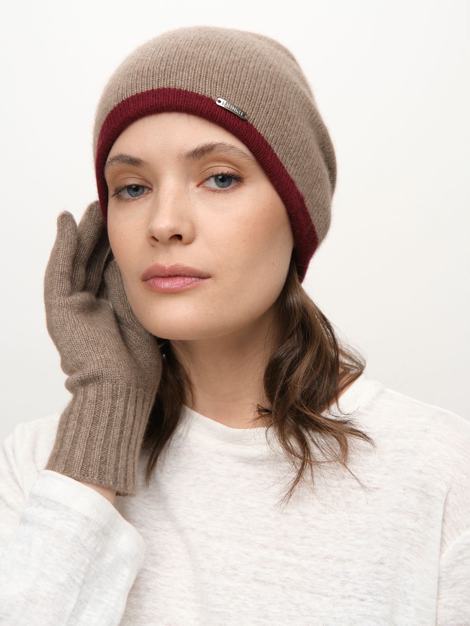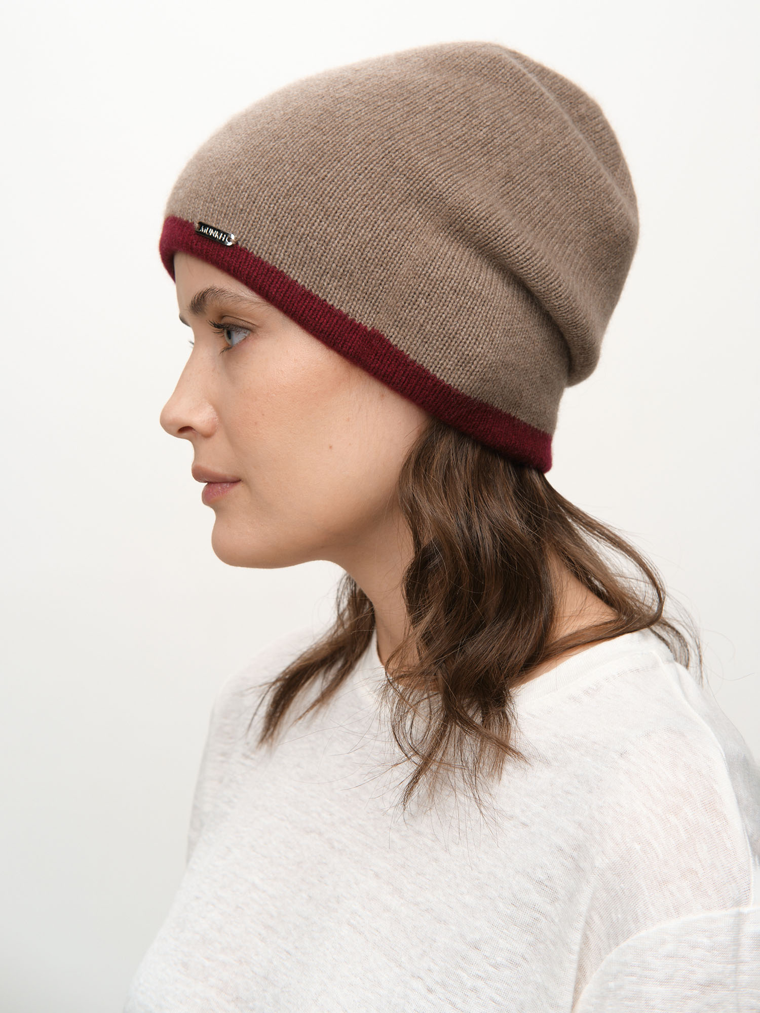 Шапка из кашемира 04186 капучино-бордовый