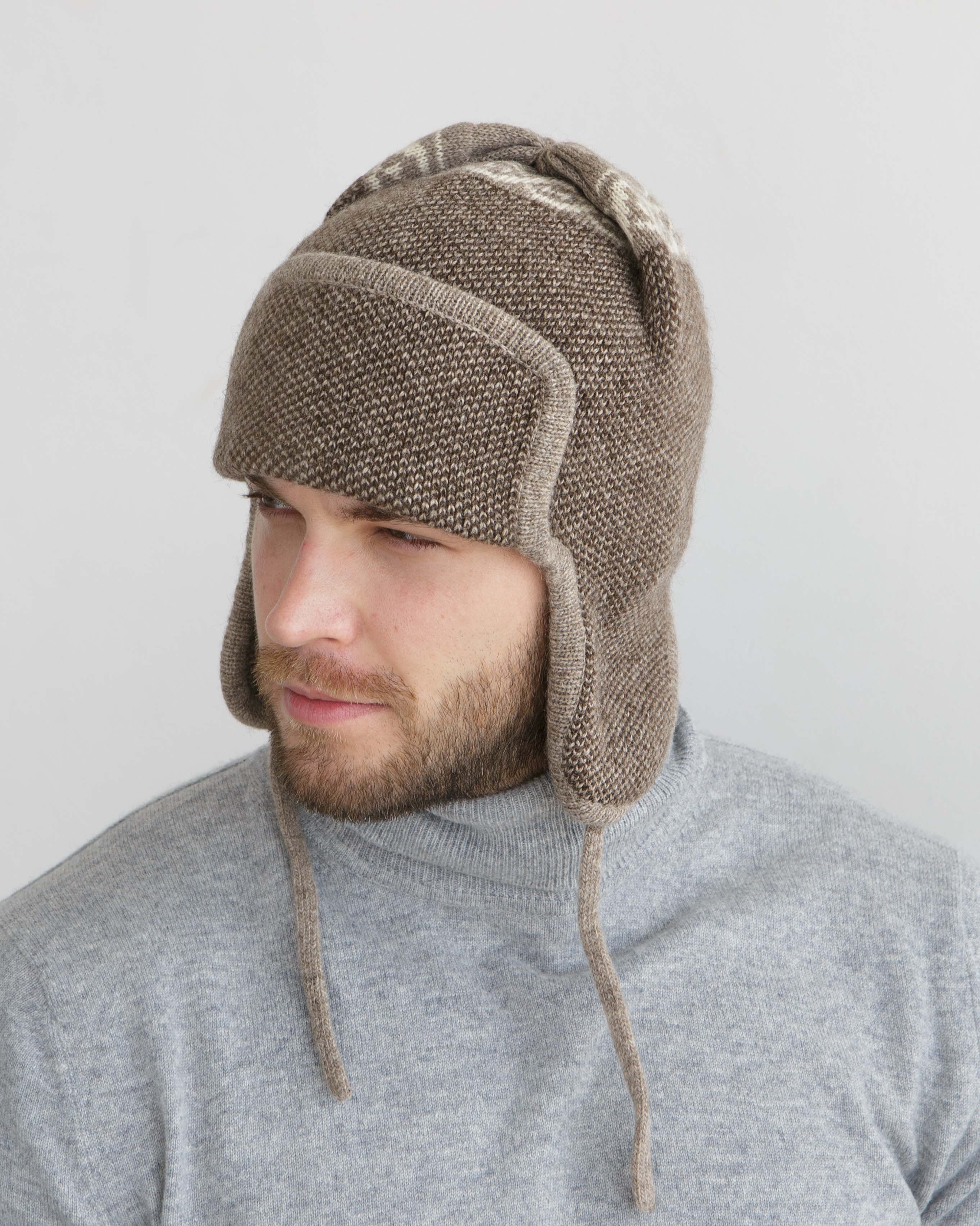 Ушанка из шерсти яка с рисунком 3871 коричневая