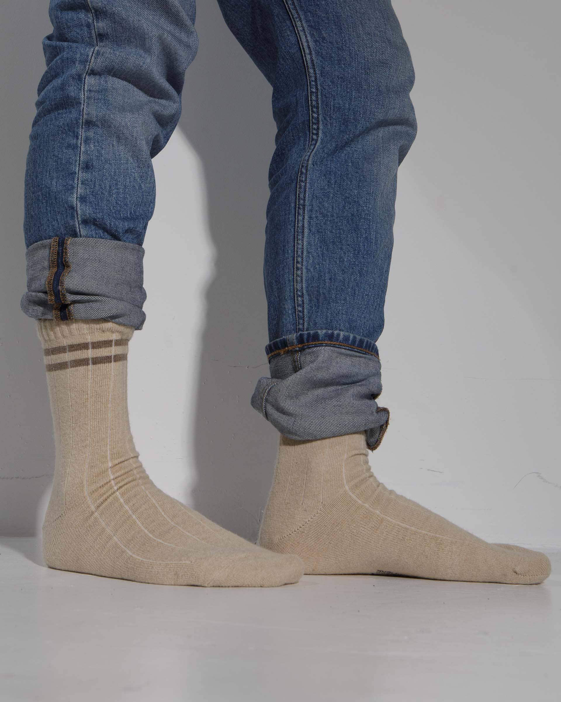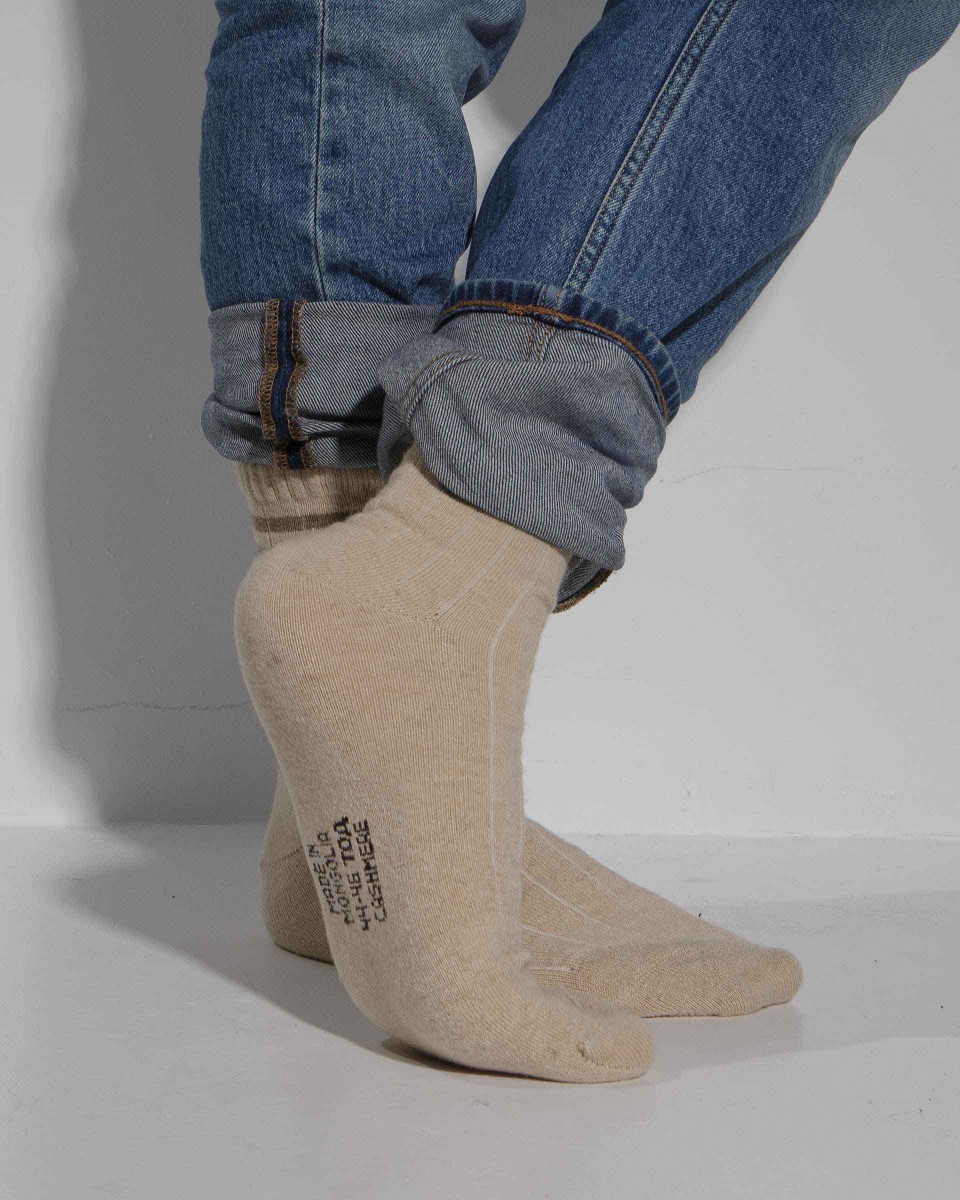 Носочки из монгольского кашемира не нуждаются в сложных описаниях. Тот, кто хоть однажды надевал их, становится поклонником кашемира на всю жизнь. Теплые, уютные, мягкие, - они сохранят тепло ножек, избавят их от лишней влажности. При всех своих достоинствах носки остаются тонкими и без проблем входят даже в самые узкие сапоги. У нас носки из кашемира представлены в двух расцветках – молочные с двумя серыми полосками и серые с двумя светлыми полосками.