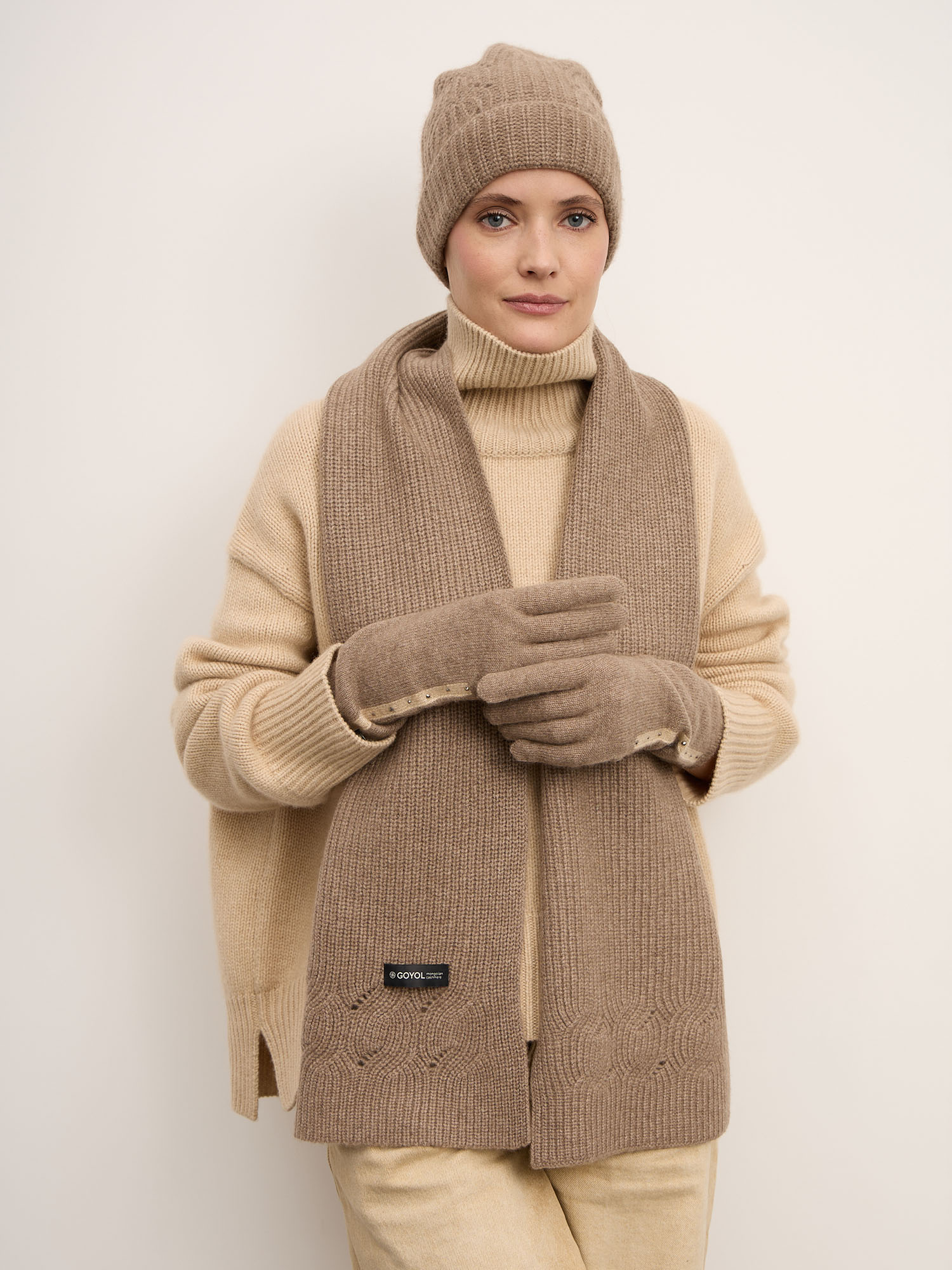 Утончённые перчатки из 100% монгольского кашемира в мягком оттенке капучино — это сочетание комфорта, тепла и элегантности. Нежная фактура кашемира дарит приятные ощущения при прикосновении, а естественный цвет подчёркивает изысканность и гармонию образа.
