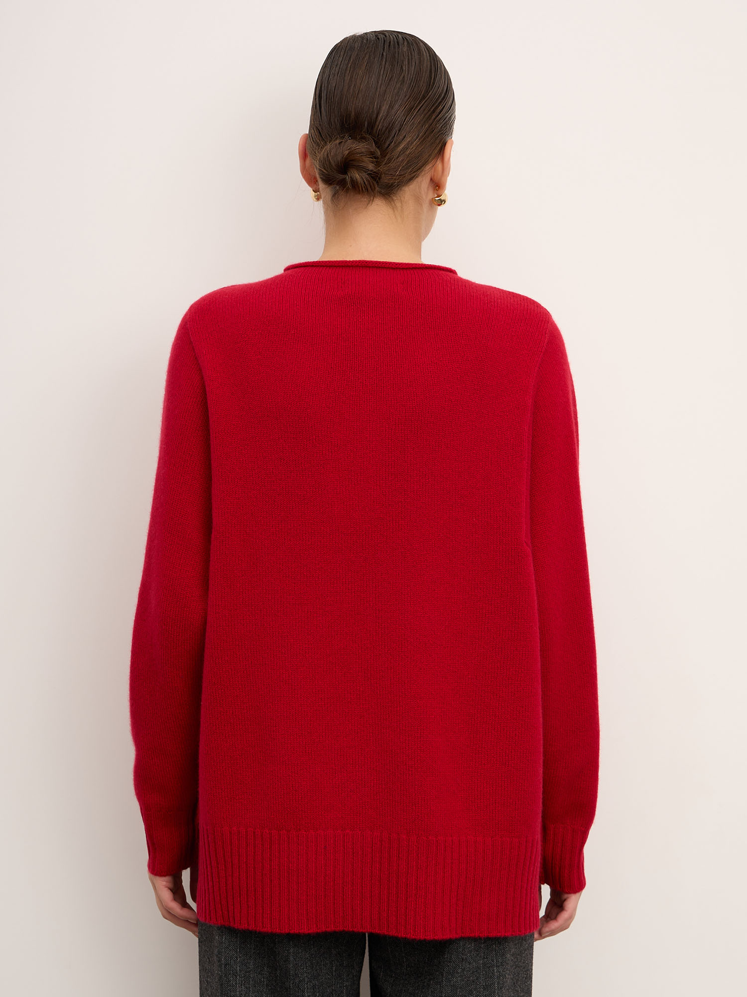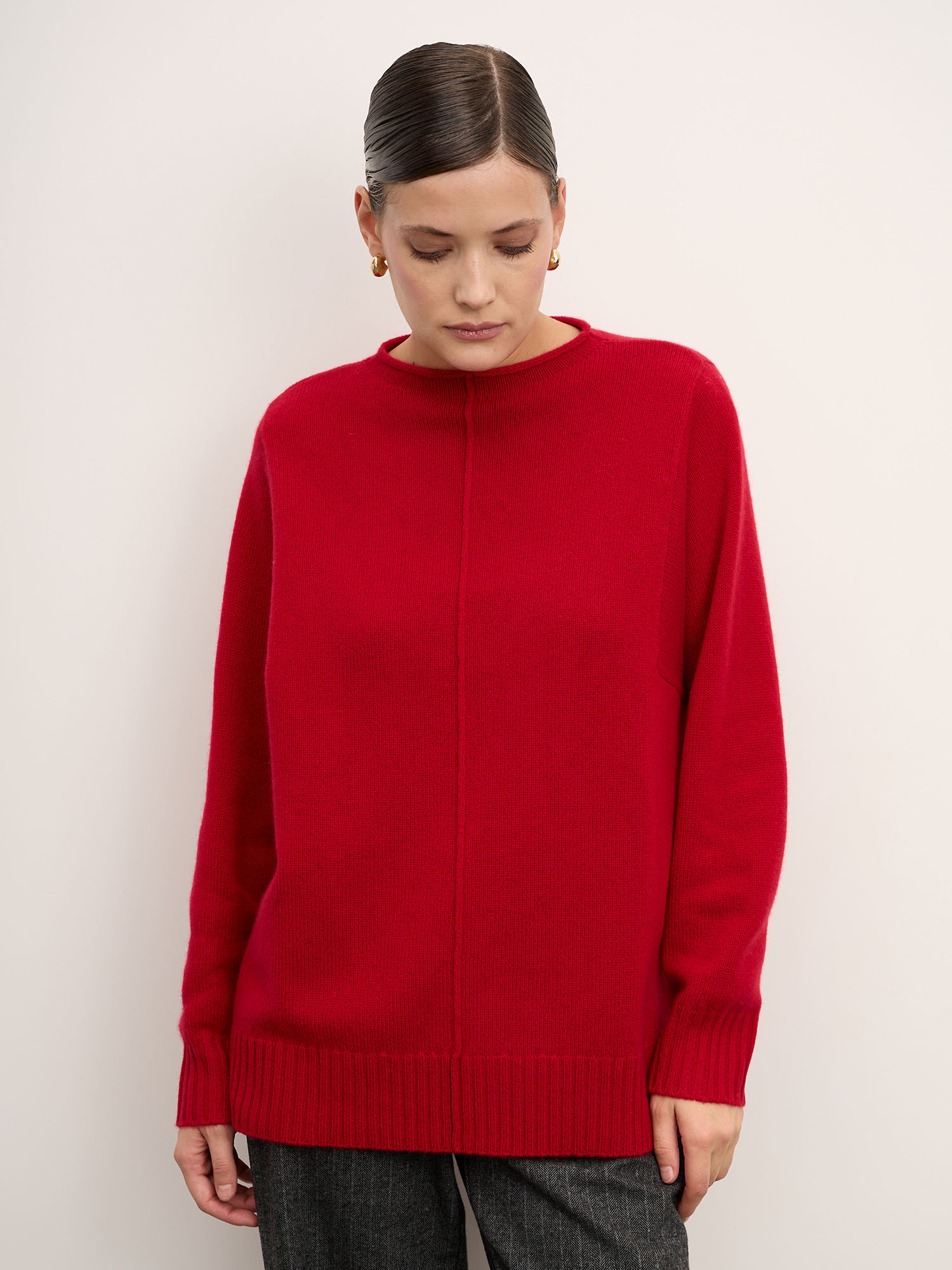 Яркий акцент базового гардероба: сочетается с классическими брюками, юбками и джинсами. Идеален под пальто нейтральных оттенков — серого, бежевого, шоколадного. Добавит выразительности и тепла осенне-зимнему образу.