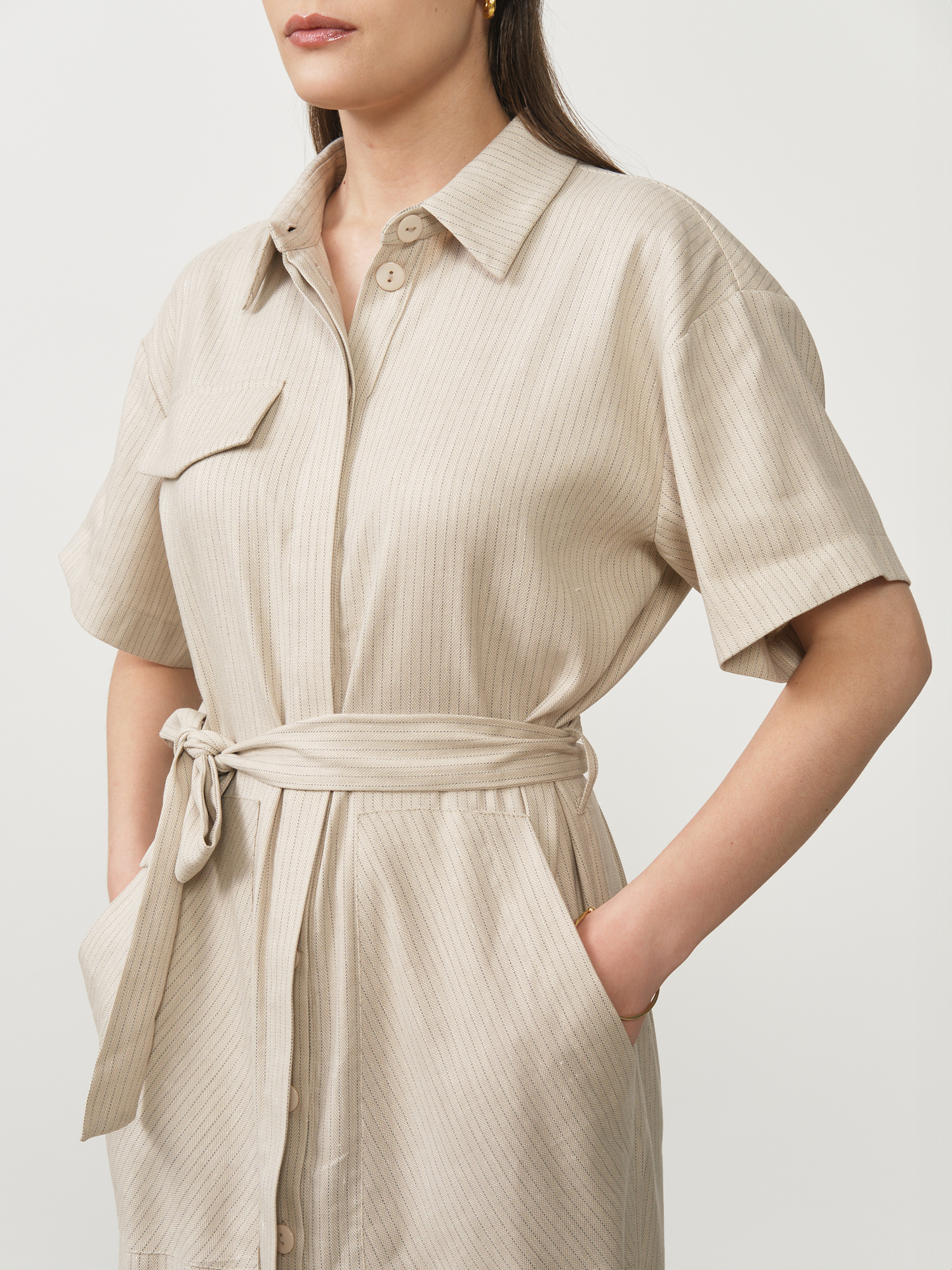 Натуральный лен с характерной благородной фактурой и матовым блеском придает особый шарм этой модели, подчеркивая природное происхождение материала. С каждой стиркой лен становится только мягче и комфортнее, сохраняя при этом форму и презентабельный вид. Это платье станет идеальным компаньоном для летних прогулок, отпуска или городских будней, даря вам чувство комфорта и уверенности в своей элегантности.