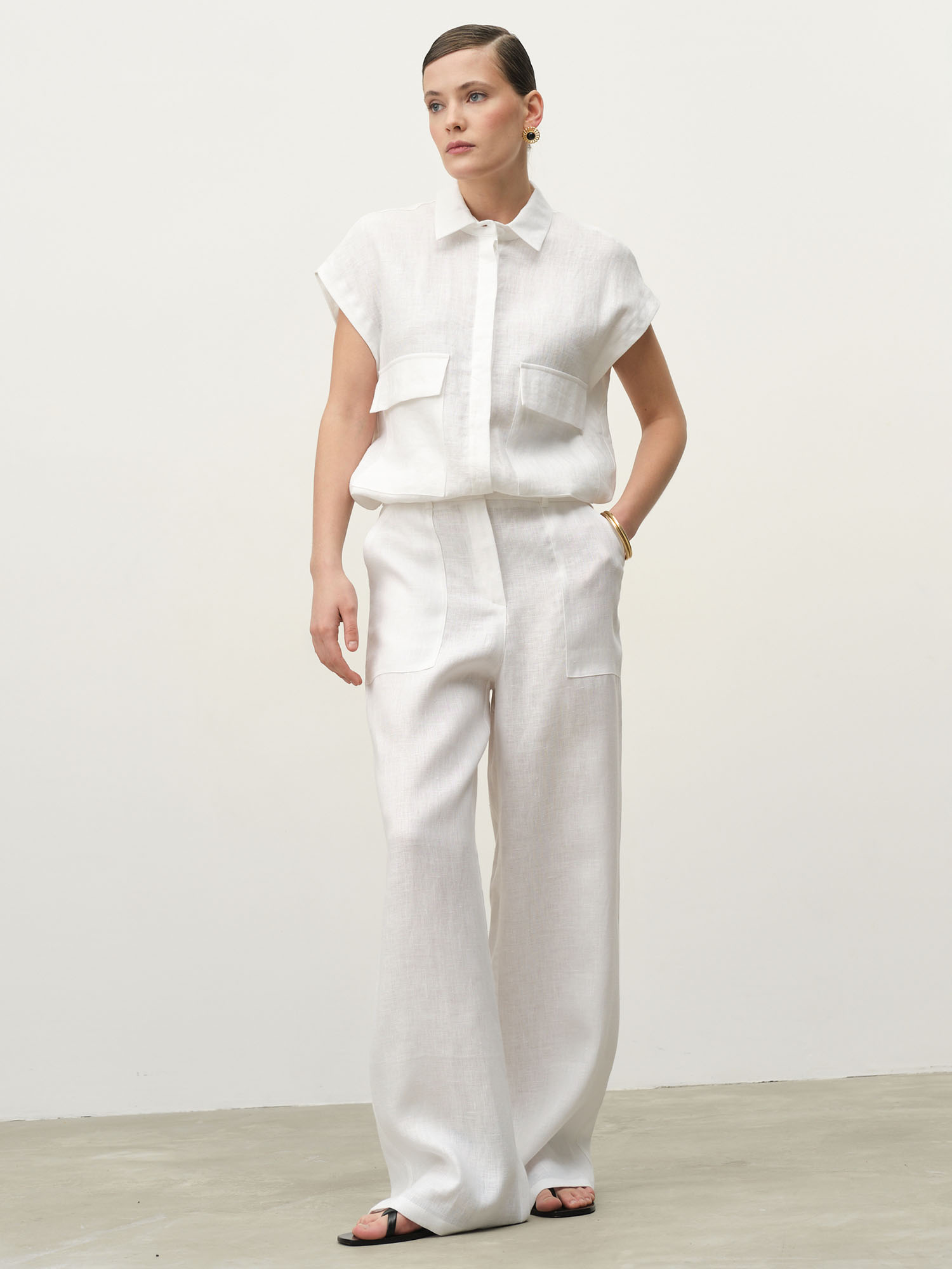 Льняная рубашка отличается безупречным кроем с лаконичными линиями и выверенными пропорциями. Свободный силуэт не стесняет движений, а продуманные детали добавляют изделию элегантности. Классический белый цвет делает эту модель универсальной основой для многочисленных стилистических решений – от делового образа до расслабленного кэжуал.