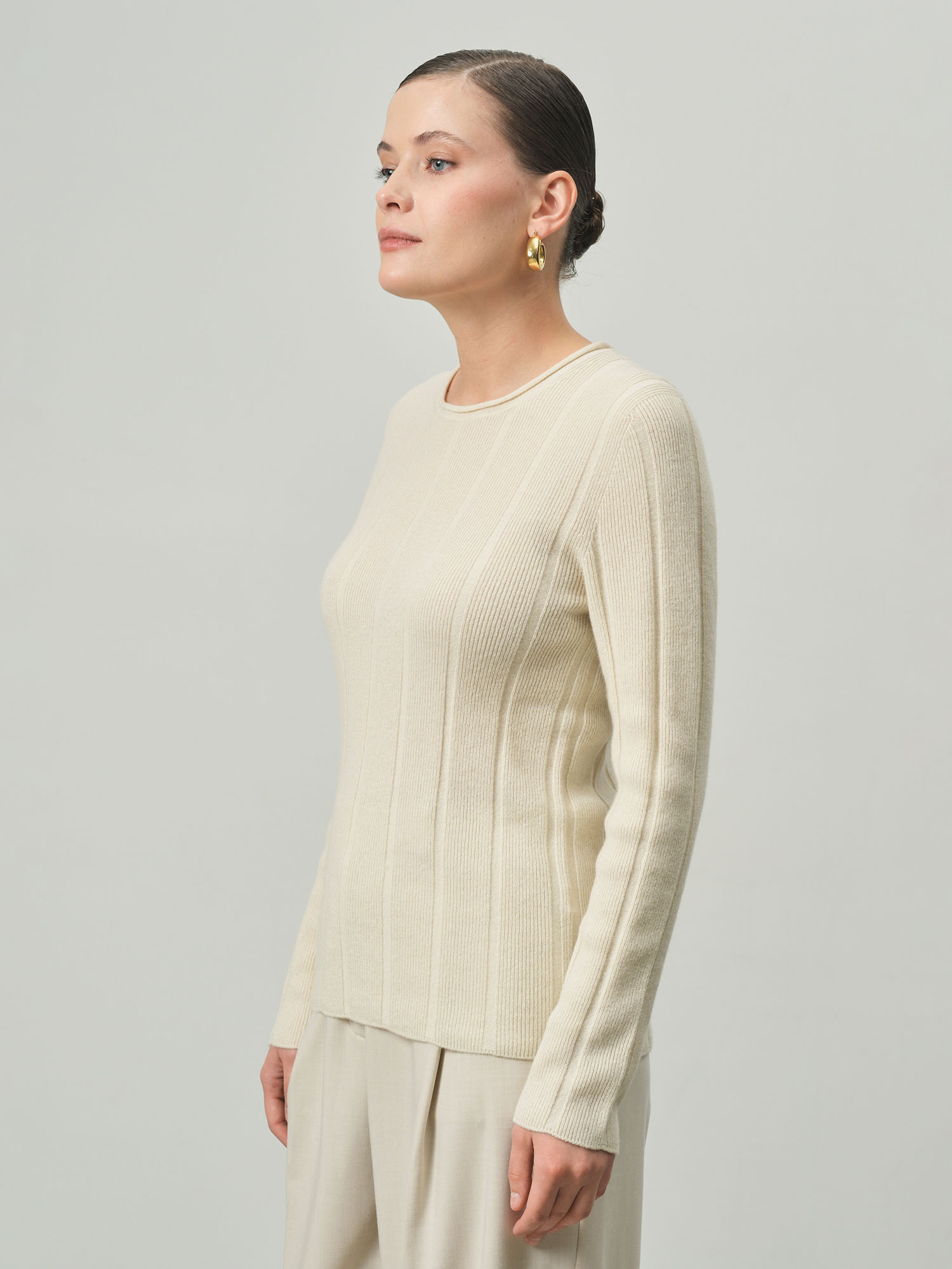 Джемпер женский из кашемира KW045530-D сливочный