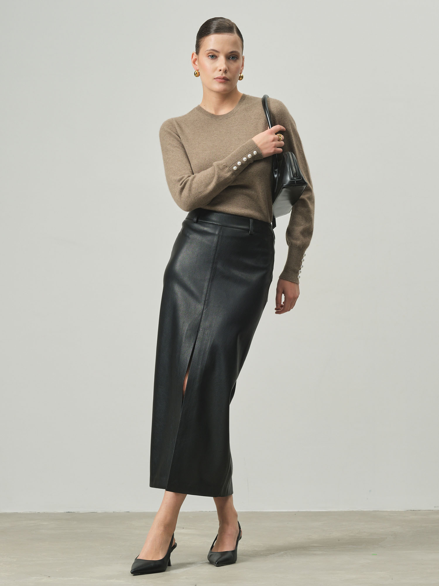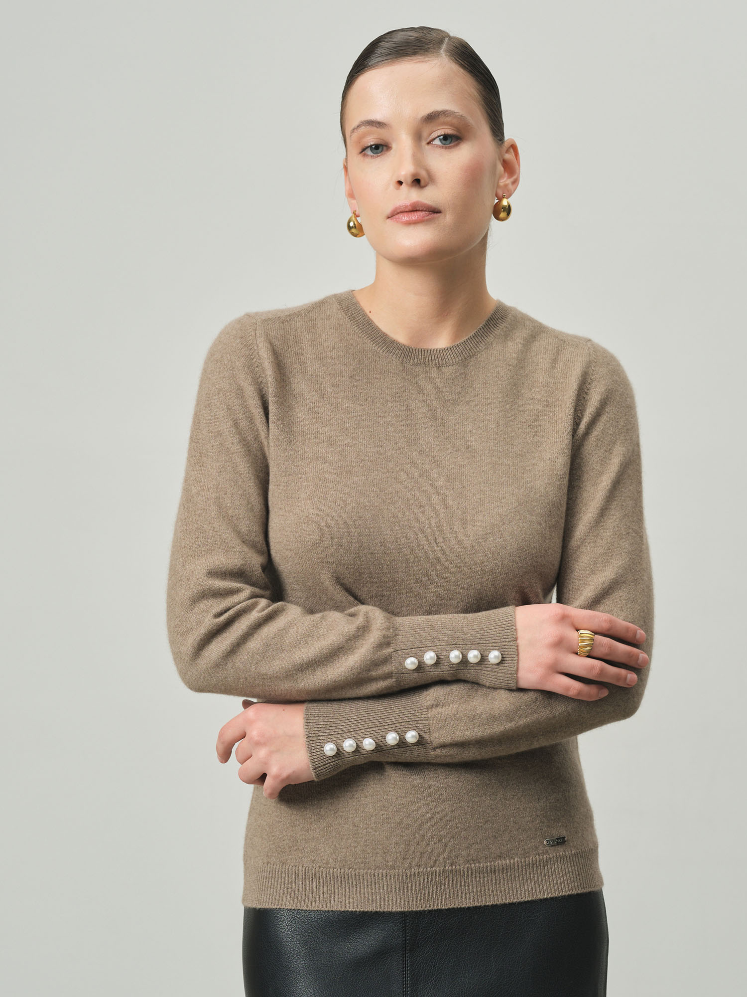 Этот кашемировый джемпер — разумный выбор для ценителей качества и стиля. Натуральный материал не только экологичен, но и практичен — при правильном уходе сохраняет форму и насыщенность цвета на долгие годы. Выберите джемпер в оттенке капучино — лаконичную роскошь повседневности, где непревзойденный комфорт кашемира встречается с универсальностью нейтральной палитры.