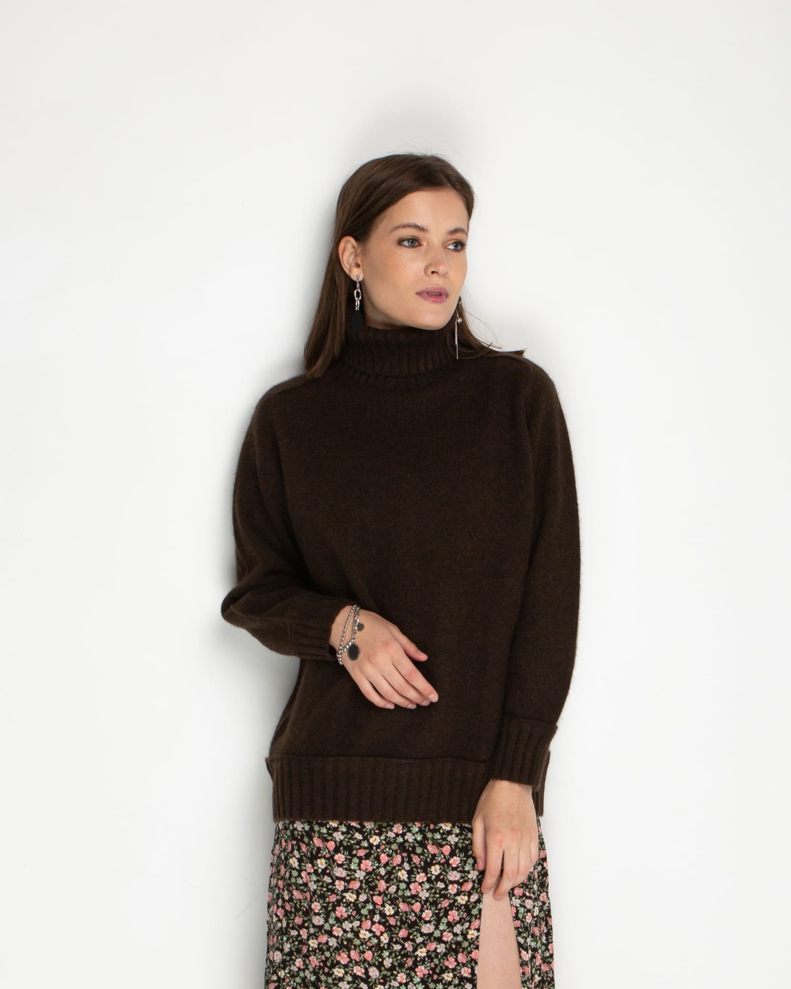 Глубокий коричневый оттенок свитера подчеркивает природное происхождение материала и придает изделию благородный вид. Этот универсальный цвет легко интегрируется в любой гардероб и сочетается с одеждой различных стилей — от классического до casual. Натуральный оттенок пуха яка никогда не выходит из моды и всегда выглядит уместно.