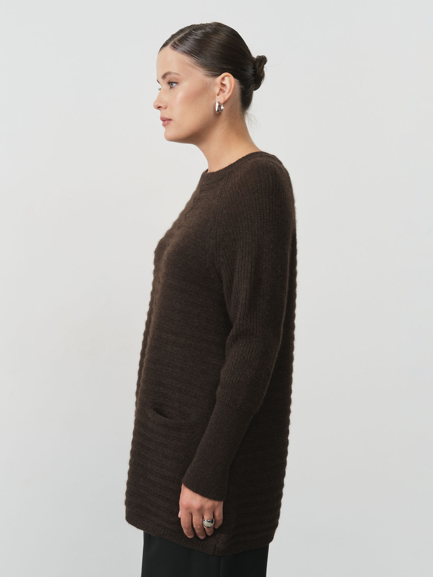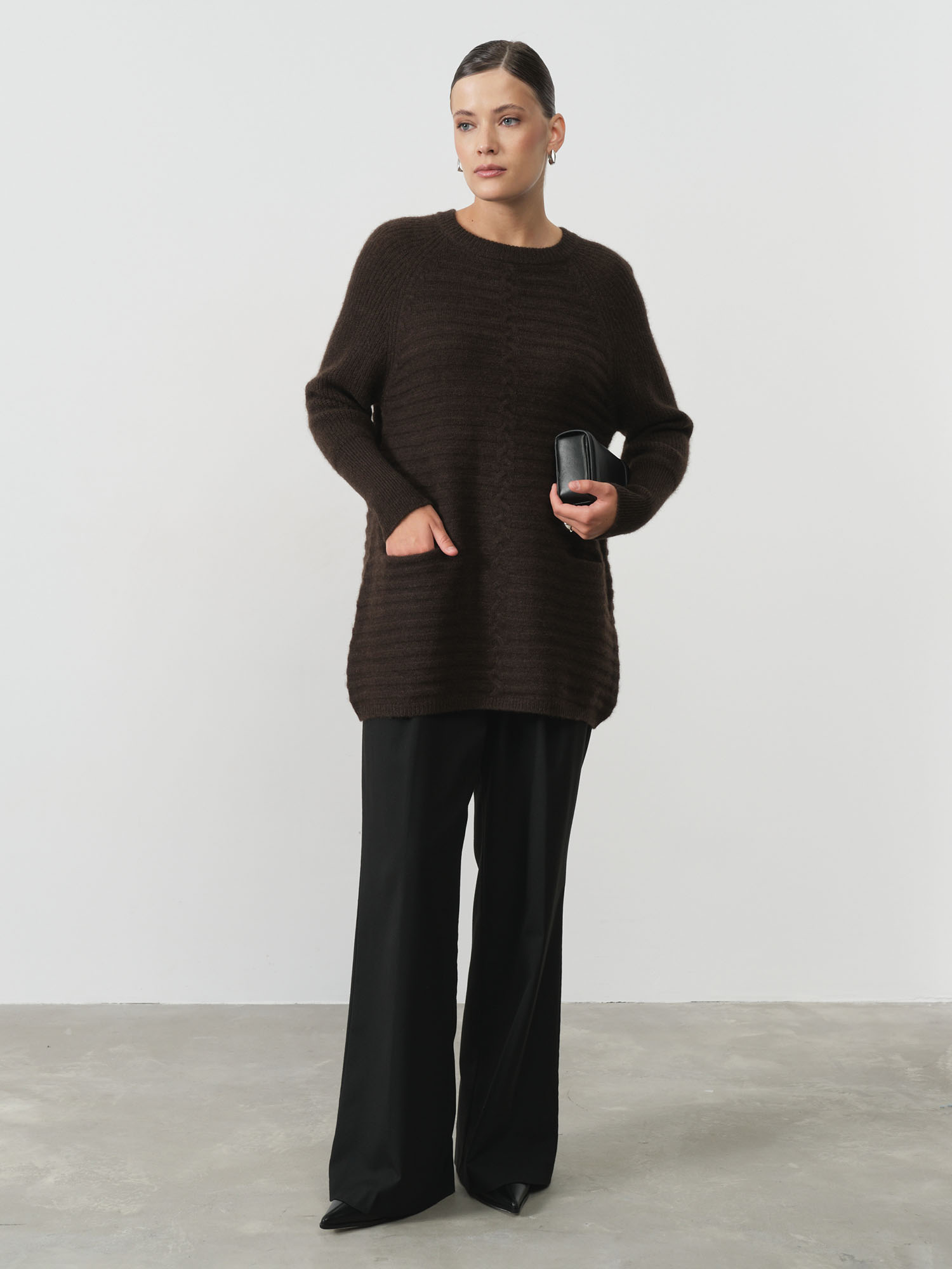Стильный джемпер из натурального пуха яка в элегантном темно-коричневом оттенке объединяет утонченность и функциональность. Изготовленный из 100% пуха яка, он гарантирует исключительное тепло и мягкость, создавая ощущение уюта в прохладную погоду. Материал обладает превосходными терморегулирующими свойствами, эффективной воздухопроницаемостью и гипоаллергенными характеристиками.