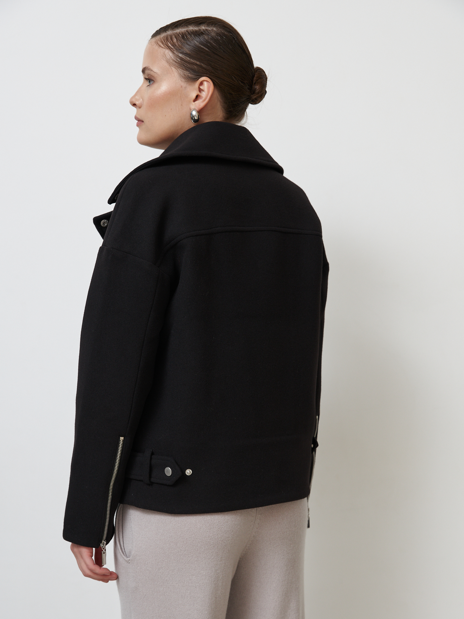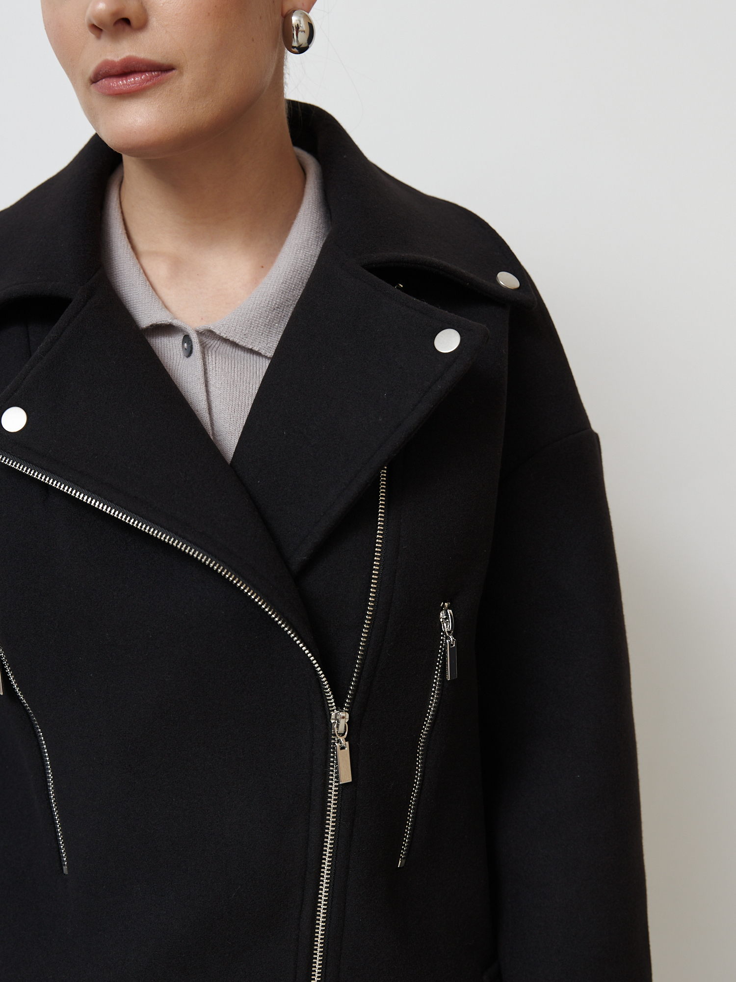 Женское черное пальто в стиле "косуха" — это сочетание элегантности и современного дизайна. Изготовлено из высококачественной шерсти, оно обеспечит комфорт и тепло в прохладную погоду. Асимметричная застежка на молнию и декоративные металлические элементы придают модели стильный и дерзкий вид. Свободный крой позволяет комбинировать пальто с различными образами — от повседневного до делового. Отличный выбор для тех, кто ценит качество и модный внешний вид.