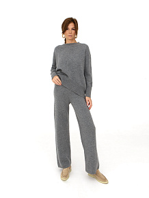Брюки-ВОСТОРГ!!!  Нежный кашемир, при это достаточно плотные. Ношу с большим удовольствием. Приятный серый цвет, который миксую с разными свитерами. Брала на два размера больше и тогда они сели идеально. Спасибо за качество вашей одежды!!!