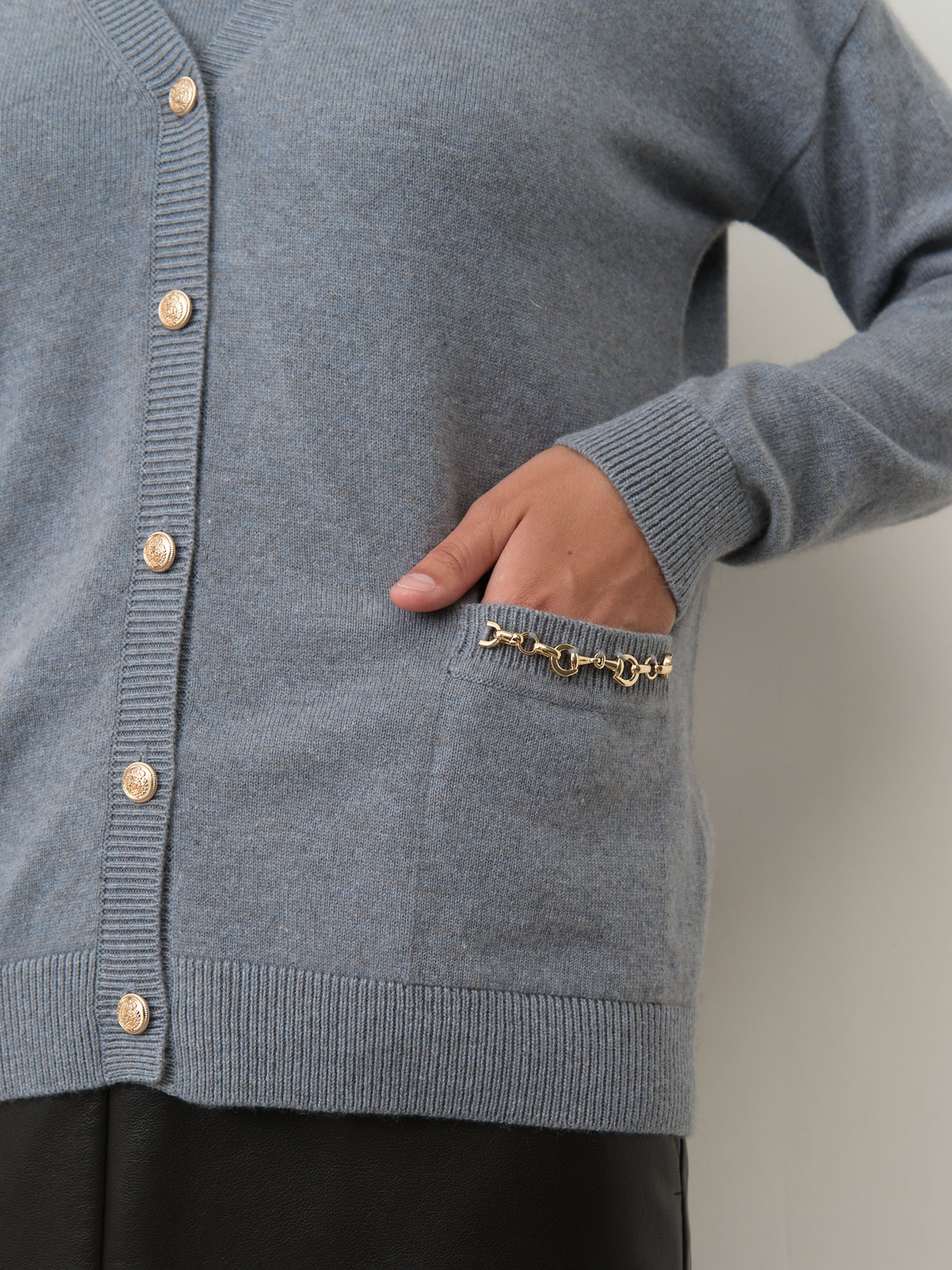 внешние карманы с золотыми пуговицами и цепью на карманах