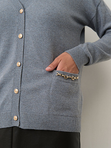 Мягкий, теплый кардиган, по ощущениям чуть покалывает кожу (по сравнению с похожим кардиганом другого производителя). Кардиган тонкий, без топа (его здесь назвали джемпером океан) форму не держит, но с топом смотрится лучше. Идет в размер, соответствует обмерам в описании, цвет также точно как на фото. |