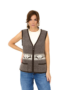 Жилет из 100% шерсти на замке 12W07001 c рисунком коричневый